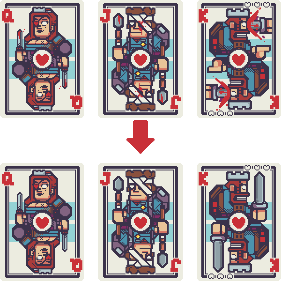 Hearts Like Ours A long time ago I pseudo-promised to make a version of the Heart Suit's face cards that had the blood removed. About six years later, here they are! I am a firm believer that Hearts a...